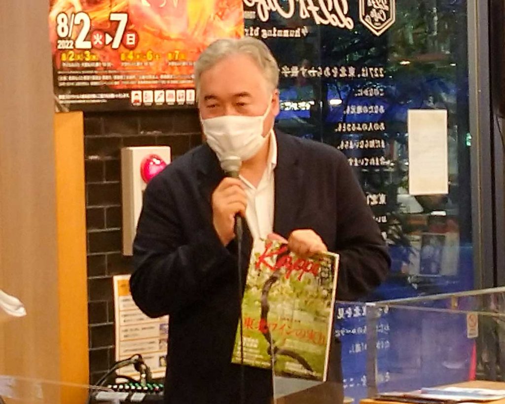 乾杯に先がけ、イベントを企画したKappoプロデューサー川元 茂さんと、秋保ワイナリー代表でテロワージュ東北の代表も務める毛利親房さんが挨拶。