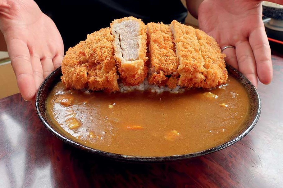 プレートを埋め尽くすカレーライスと、JAPAN Xを使った330gものトンカツが迫力満点!
