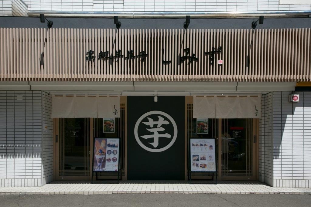 仙台市中心部から国道48号線を大崎八幡宮方面に向かうロードサイドに位置。焼き芋の断面をイメージした看板が目印