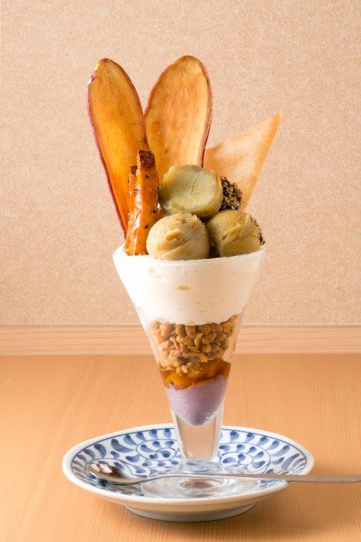 「贅沢『芋』パフェ」は、紅はるか&安納芋の焼き芋ペーストをはじめ、鳴門金時芋棒など13種の甘味を堪能できます