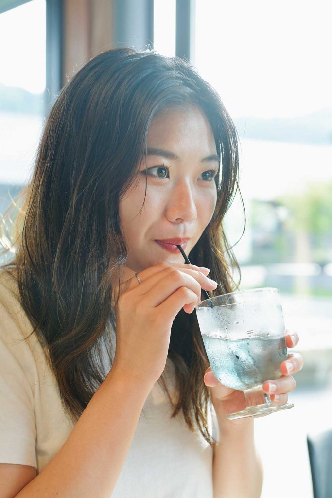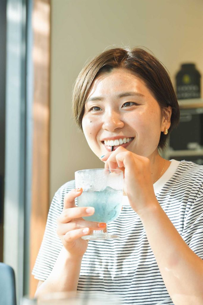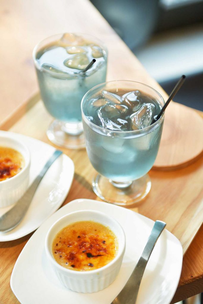 ブルーが映えるお茶をオーダー。