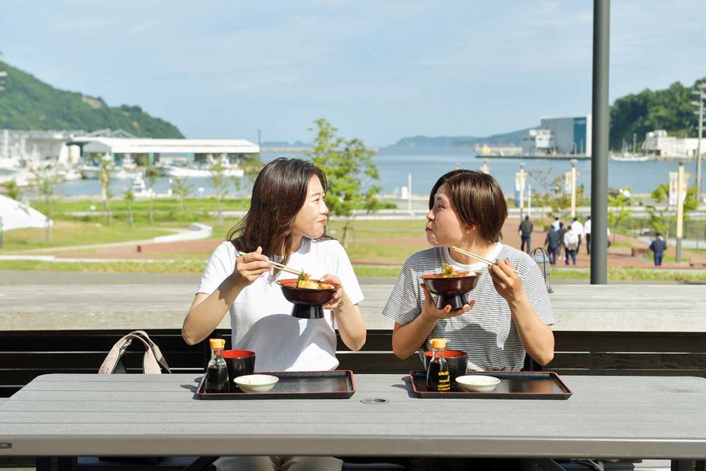 晴れた日には女川港を見ながら食べられるテラスが人気ですよ。
