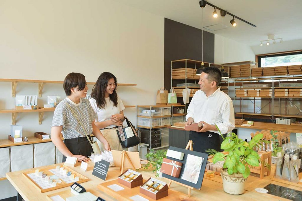 アカモクやワカメ、ニンジンなど珍しい素材を使用した石鹸もあり、チョコレートのようなパッケージのセットは、贈り物としても人気。