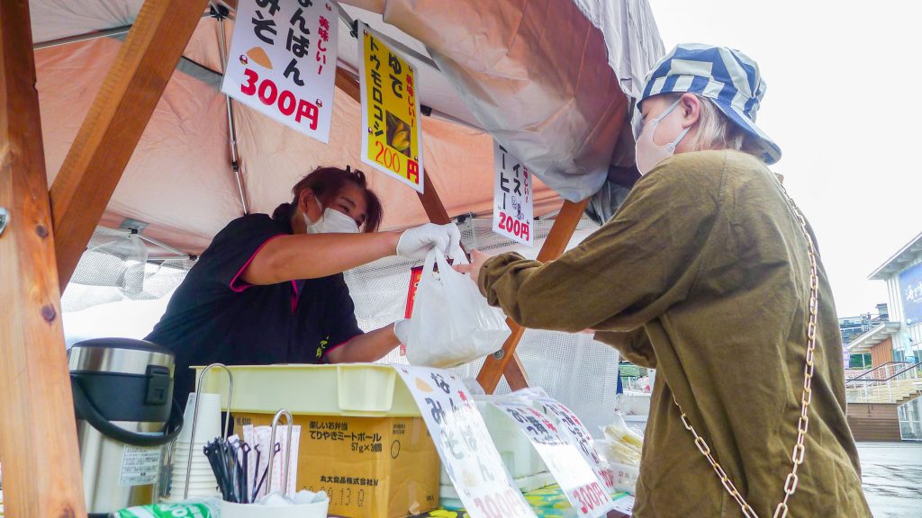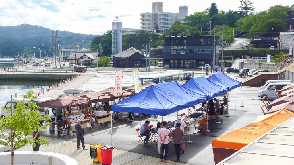 気仙沼の新たな名物となることを目指して、毎月第1日曜日の朝に「お試し朝市」を実施中。海を眺めながらの朝食はいかが?