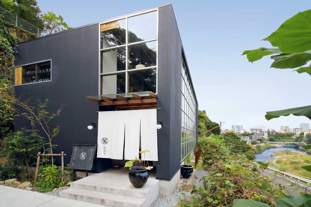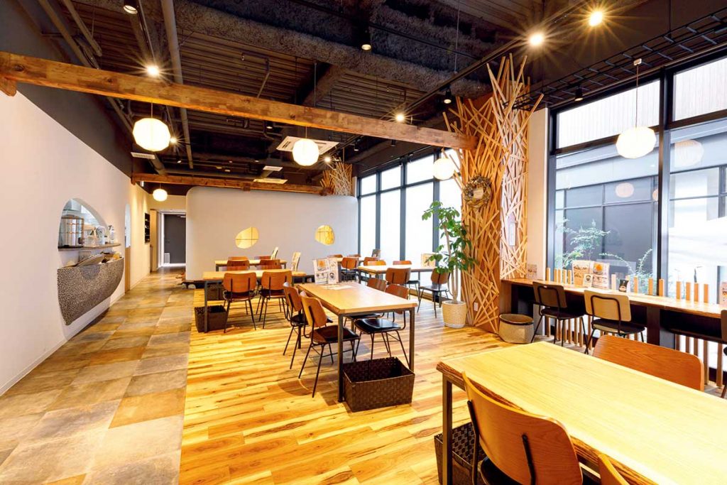 モダンな佇まいが目を引く一軒。店内では「伝統食を提供するなら」と集めた、伝統工芸品や日本の手工業者による暮らしの道具や器も販売しています
