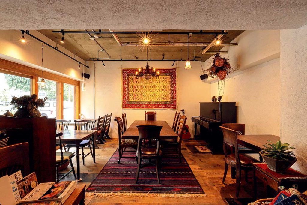 空間を作るのはどれも店主夫妻が作家とのつながりを大切に選んだ品々。キリム絨毯は販売も行っています