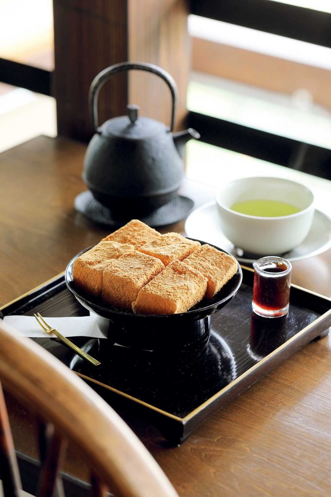 大鍋を使って仕上げた「わらびもち」(煎茶付・840円)。そばを注文した人は単品(520円)でもオーダーできますよ