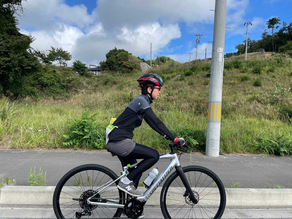 こけしはというと達成感のある表情で、「私でも100kmを完走できたのは、操作も簡単で乗り心地快適なe bikeのおかげ以外の何物でもありません。登坂を前に心が折れそうなときも“私にはトレイルモードがある”という安心感は本当に心強かったですね。バッテリー残量も結構残っていたので、最後は奮発してトレイルモードで颯爽と帰ってこれました。途中はある程度余裕も生まれて山から見下ろす海など風景も楽しめて、ライダーさんの優しさにも触れて、自転車の楽しさを実感できました!」