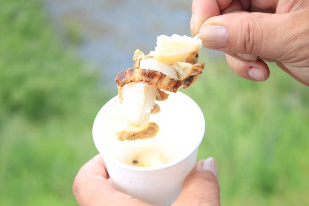 雄勝ASに着く頃には、さすがに「暑い…そして疲れてきた」という状況でしたが、ホタテ焼きのプリプリとした食感と塩味で体力回復!?