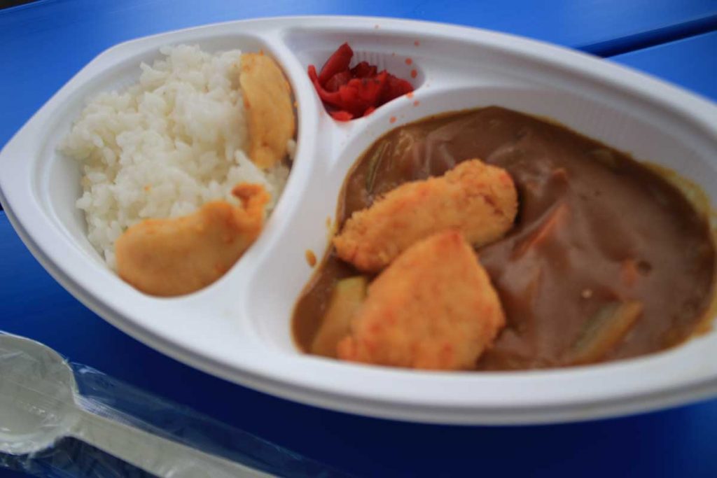 折り返し地点である神割崎ASに到着した時のバッテリー残量はまだ70%。南三陸シーフードカレーをいただきエネルギー回復!神割崎で休憩している間に小雨が降ってきたが、コース最後の北上ASに着く頃にはすっかり上がり、うにめかぶを堪能。北上川沿いを石巻に戻ってくるルートは相変わらずの向かい風で、標高差はないとはいえずっとペダルを回し続けないと進まない、ライダーにとっては辛いポイント。ですが、バッテリー残量とともに段々と気持ちの余裕が出てきたこけしの頭の中では、ZARDの「負けないで」が脳内再生されていたとか!