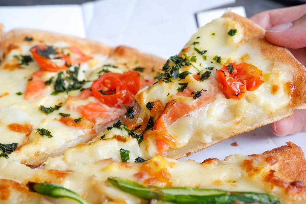 今回の「三陸産サーモン&クリーム」は、スモーク加工したサーモンと、北海道産牛乳を使用したクリーミーなホワイトソースを合わせたピザ。