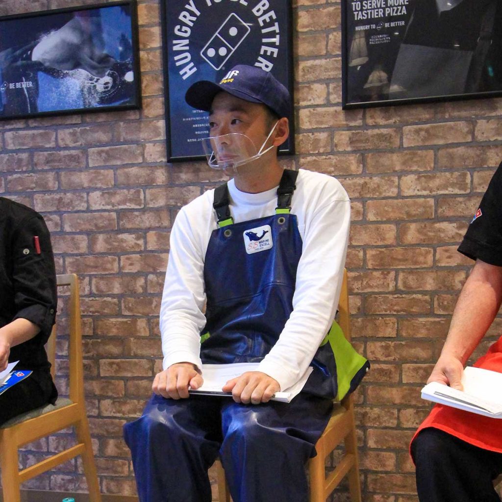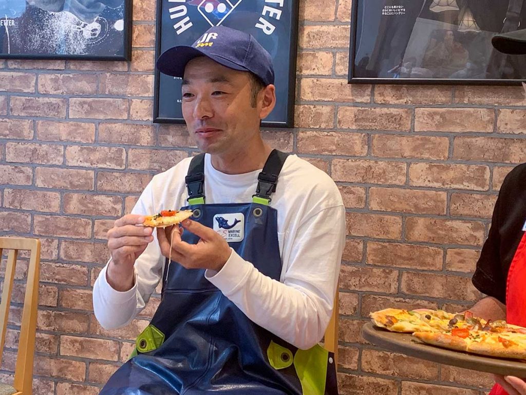 『ドミノ・ピザ』五橋店オーナーの渡邊さん。「宮城県のサーモンはいつも生食で食べていますが、ドミノ・ピザのオーブンで焼かれたサーモンも絶品でおすすめです!」とPR