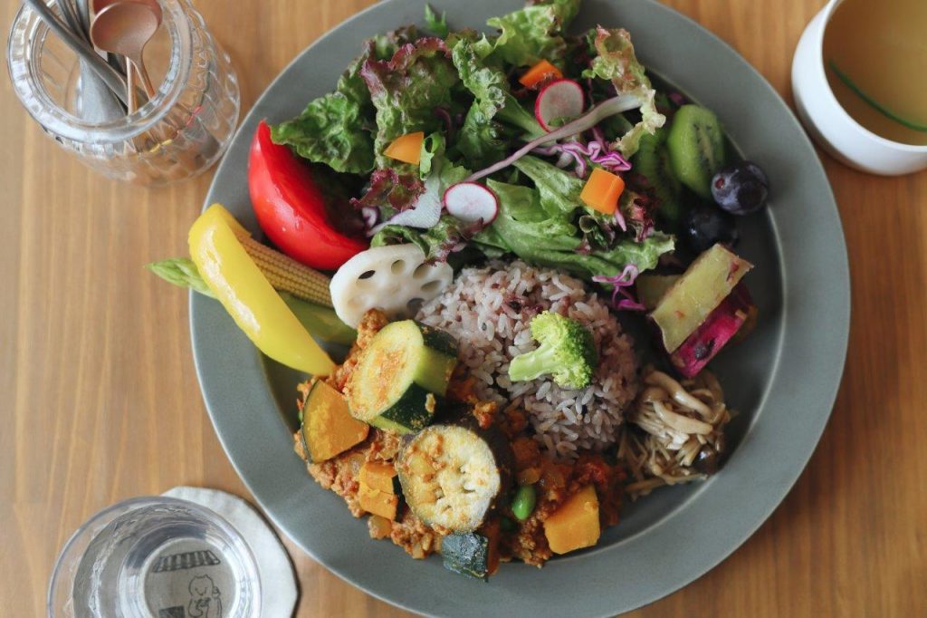 この日の「くまプレート」(1,490円、11:00~15:00)は「7種の夏野菜たっぷりバターキーマカレー」。ほかに「文鳥プレート」もあります