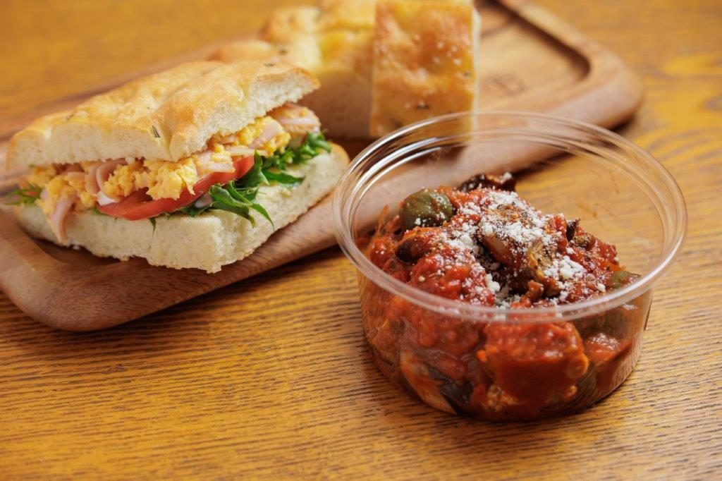 キッシュのほかにも、スパイス香る「サルシッチャと実家の茄子のトマト煮」(550円)や、「米粉サンドハムタマゴ」(400円)もおすすめ