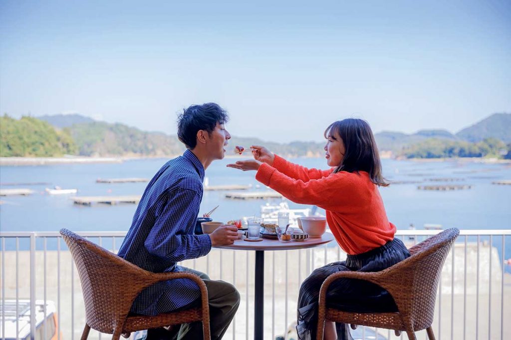牡蠣養殖業で知られるヤマヨ水産が営む食堂。大島瀬戸の海原を眼前に眺めながら味わう料理は格別の味わいです!