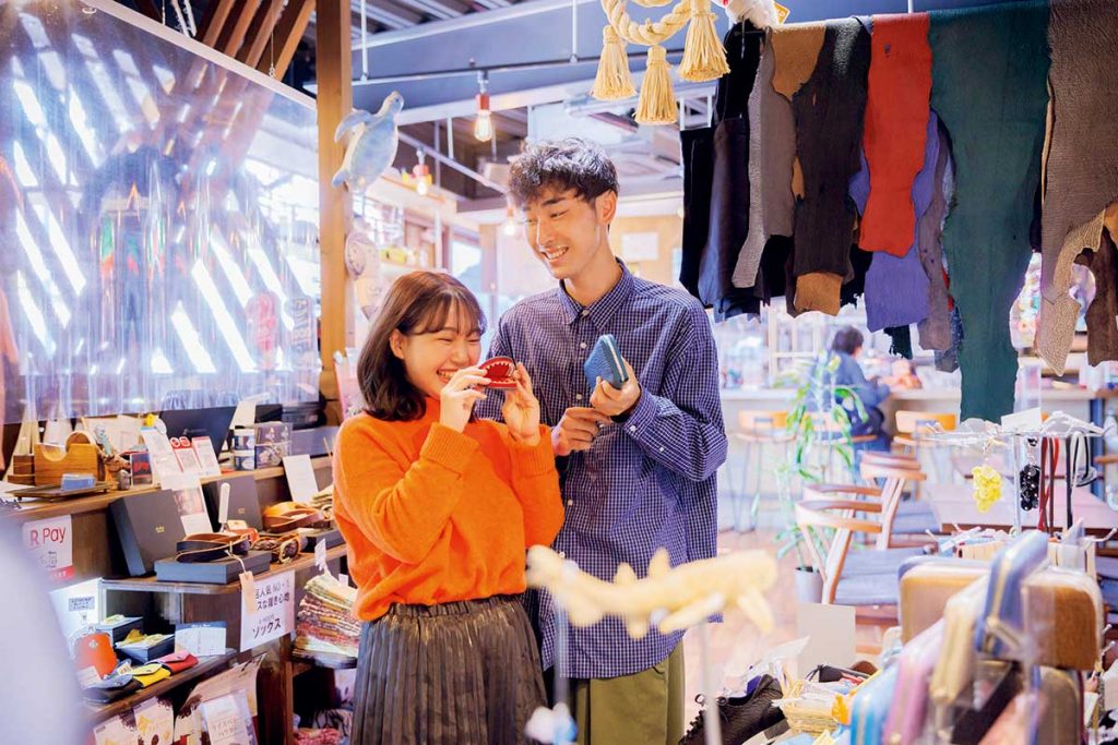 「ムカエル」の1Fにある『気仙沼シャークス・ショップ』では、稀少なサメ革を使った財布や名刺入れなどのアイテムを購入できます!