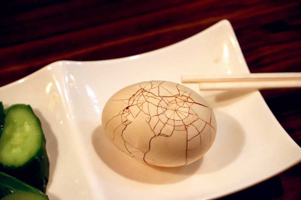 殻付きの煮タマゴは、「一つひとつ、割れ方も剥け方も違ってキレイでしょ」と栄霞さん。普段は気に留めない日常の風景ですが、思わず見入ってしまいます