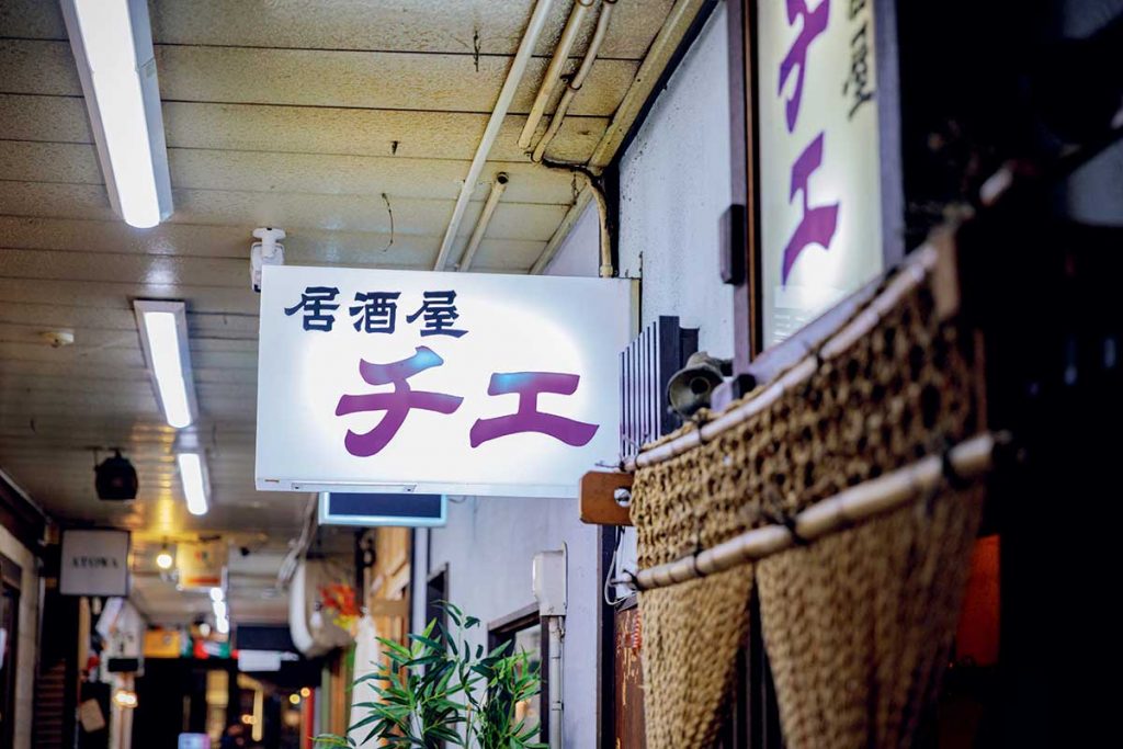 ということで17時、まず潜り込んだのは、紫文字の看板が目を引く居酒屋『チエ』。
