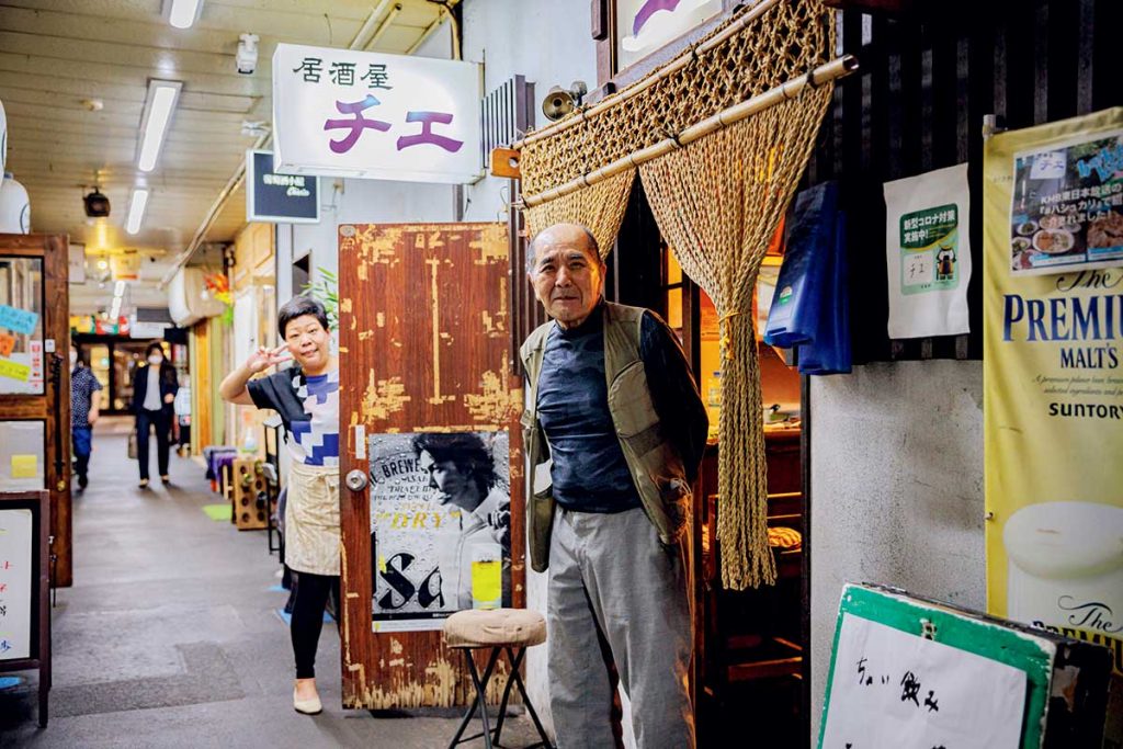 『チエ』にいつ行ってもカウンターに座っている、写真右の男性。ヨシオさんと言い、栄霞さんの相方さんである。