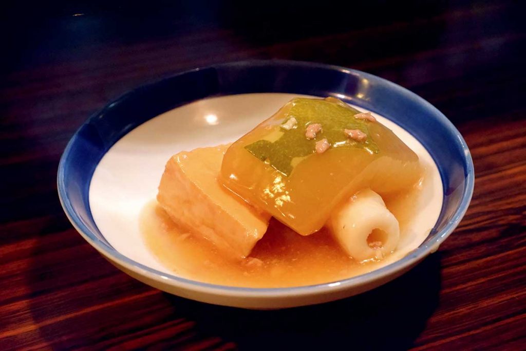 3品目は、鶏そぼろ餡でやさしい味わいに仕上げた冬瓜の煮物。皮を少し残しておくのが見た目にも美しく煮崩れしないポイントなんだそう。しっかり味が染みていてほっこり落ち着く味!