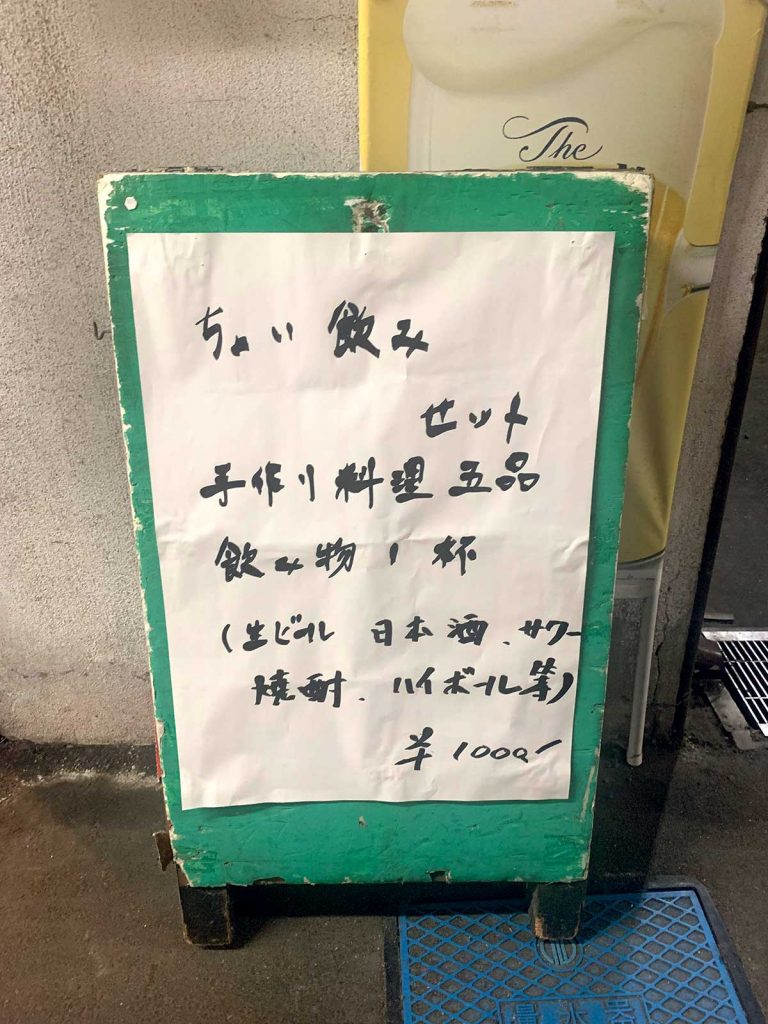 ひとり1,000円でおまかせ手作り料理5品+飲み物1杯が『チエ』の基本プラン。これが世にある“ちょい飲みセット”のコスパをゆうに超えてきます