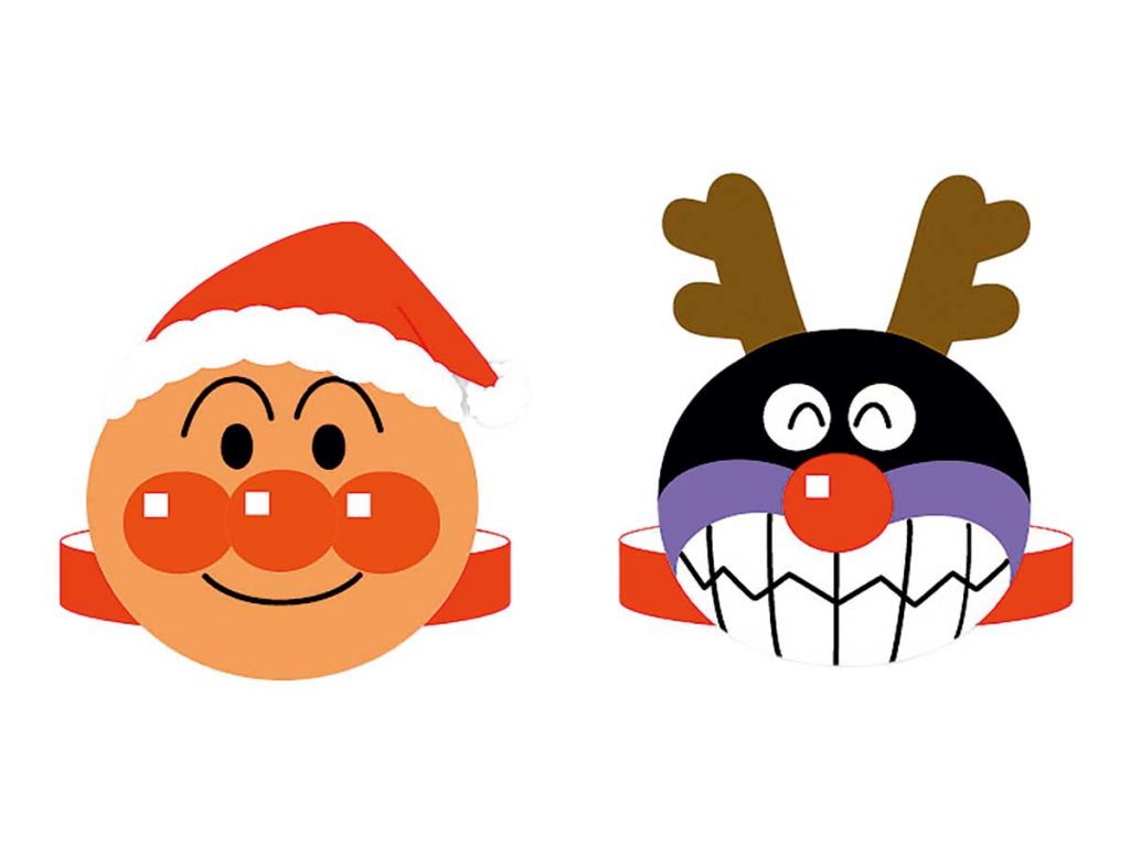 のりとペンで作る「クリスマスお面工作」。「サンタ帽をかぶったアンパンマン」と「トナカイ姿のばいきんまん」から選んでお面を作れます。小さなお子さまもどんどん参加しよう!(場所:2Fミュージアム あかちゃんまんテラス)