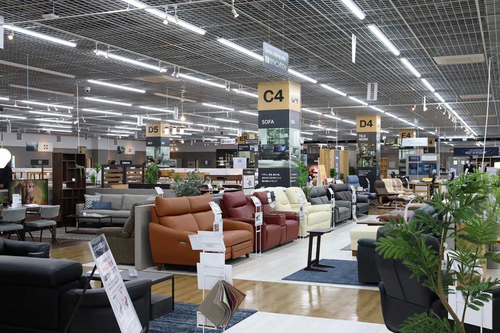 家具・家電など豊富なアイテムラインナップで訪れる人のニーズに応えるだけでなく、リアルとオンラインが融合したDX導入型のサービスや、商品案内から取り付け、アフターサービスまでを一人のプロフェッショナルスタッフが担当するSE(セールスエンジニア)サービスも特徴となっています。