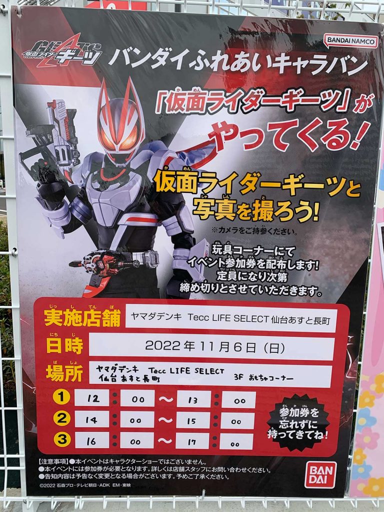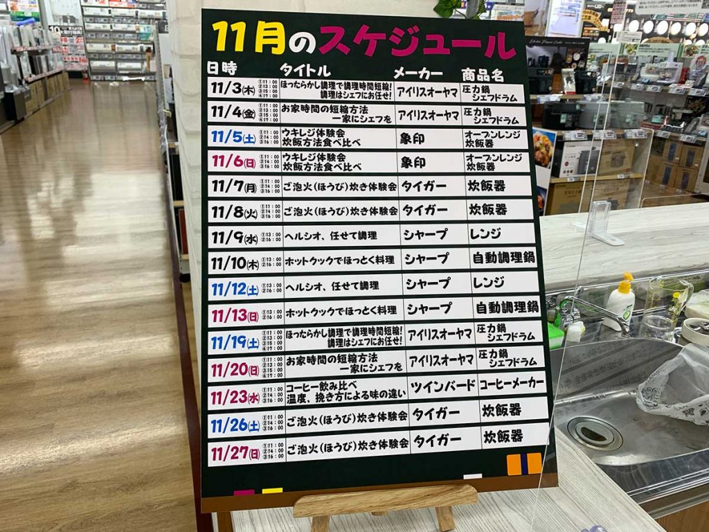 横串店長PC、TV、冷蔵庫、寝具セットなどの抽選特価品を用意しています。また、各種携帯電話はかなりお得になるので必見ですよ。11/5(土)・11/6(日)には仮面ライダーとシルバニアファミリーの子ども向けイベントも用意しておりますので、ぜひお楽しみにしていてください!