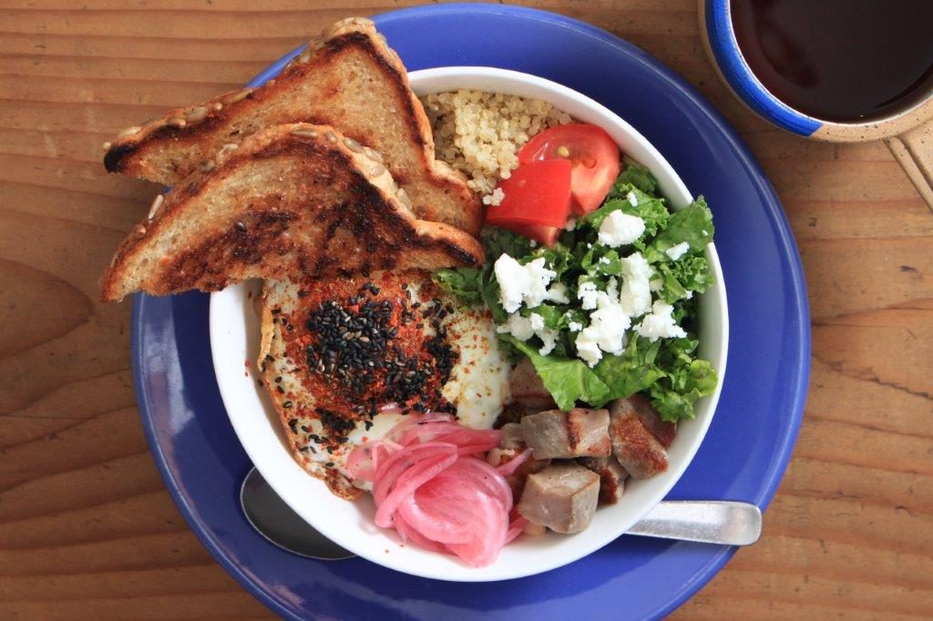 “一日中アメリカの朝食が食べられる店”がコンセプト。ボリューミーな「BREAKFAST HASH」は、低温調理で旨みを凝縮させたローストポークやアクセントのキヌア、たっぷりのハッシュドポテトにとろける目玉焼きなどをひと皿に。ほんのりと甘みある雑穀パンはおかわりもできるので、幸せにお腹を満たしてくれそうだ。