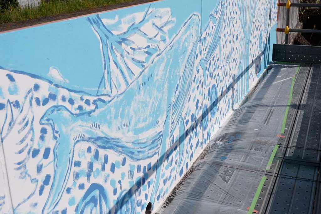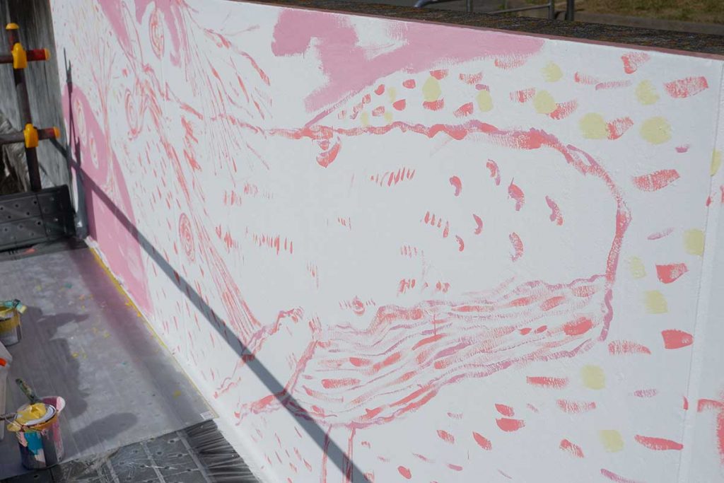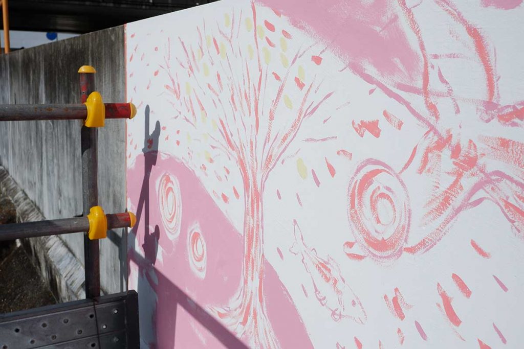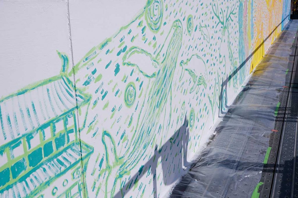 中川さん以前、沖縄でホエールウォッチングをした時から、なぜかクジラに強く惹かれるようになりました。そのため、自分の作品でもクジラを描くことが多いです。今回の壁画アートでは、大きくクジラを描くことができるので完成が楽しみです。