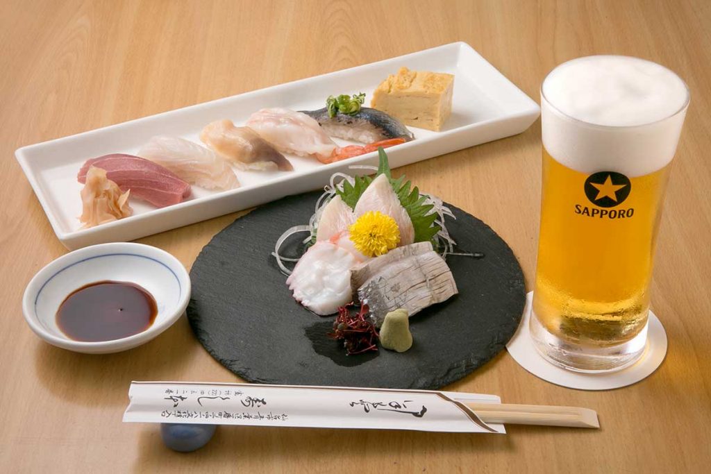 ●ドリンク1杯(純米大吟醸、ヒレ酒を除く)+握り6貫+お造り3品+香の物