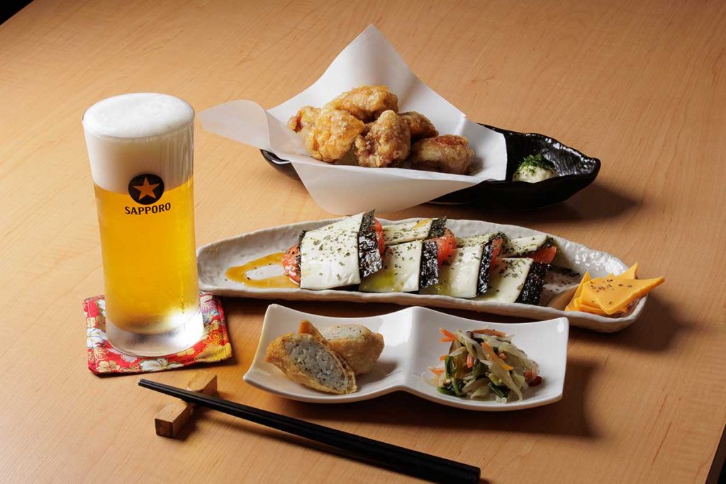 ●ドリンク1杯(生ビールorハイボール)+お通し+鶏の唐揚げ+モリ風カプレーゼ