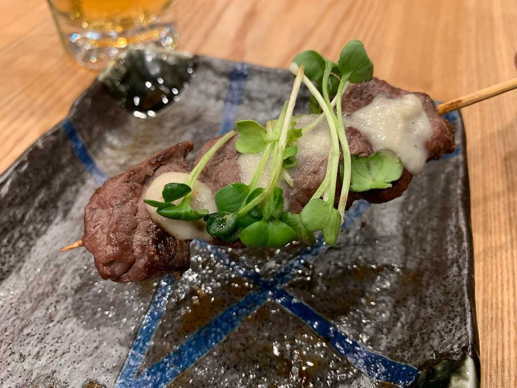 「エゾ鹿 ホースラディッシュソース」(380円)。爽やかな辛さのホースラディッシュはこのひと串のためだけに仕入れているそう