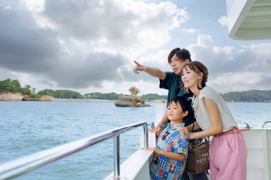 松島には、家族一緒に楽しめるスポットが目白押し!中でも湾内を周遊できるクルーズがイチオシですよ。大自然が織りなす地形の美しさに、島の形のおもしろさ、海鳥の姿など学べるポイントも満載。乗船受付は『松島海岸レストハウス』で行っています。
