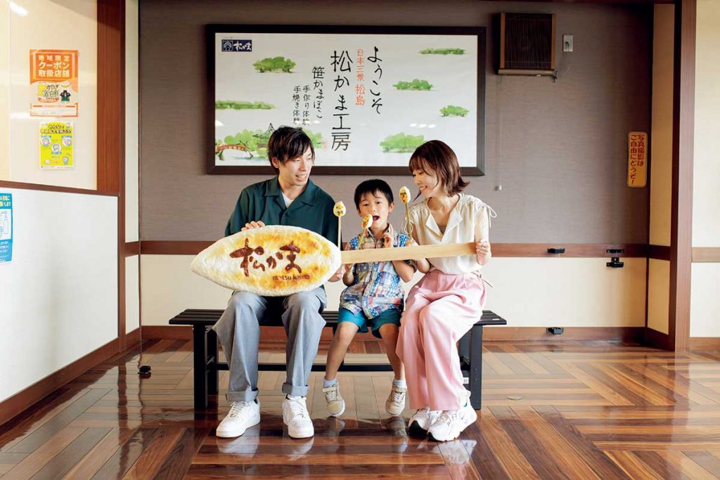 『松かま』の愛称で親しまれるこちらは、手軽に笹かまの手焼き体験ができることでも有名です。実は2階の「松かま工房」では、すり身からの手作り体験ができちゃいます!お子さんの食の学びにもつながりそうです。