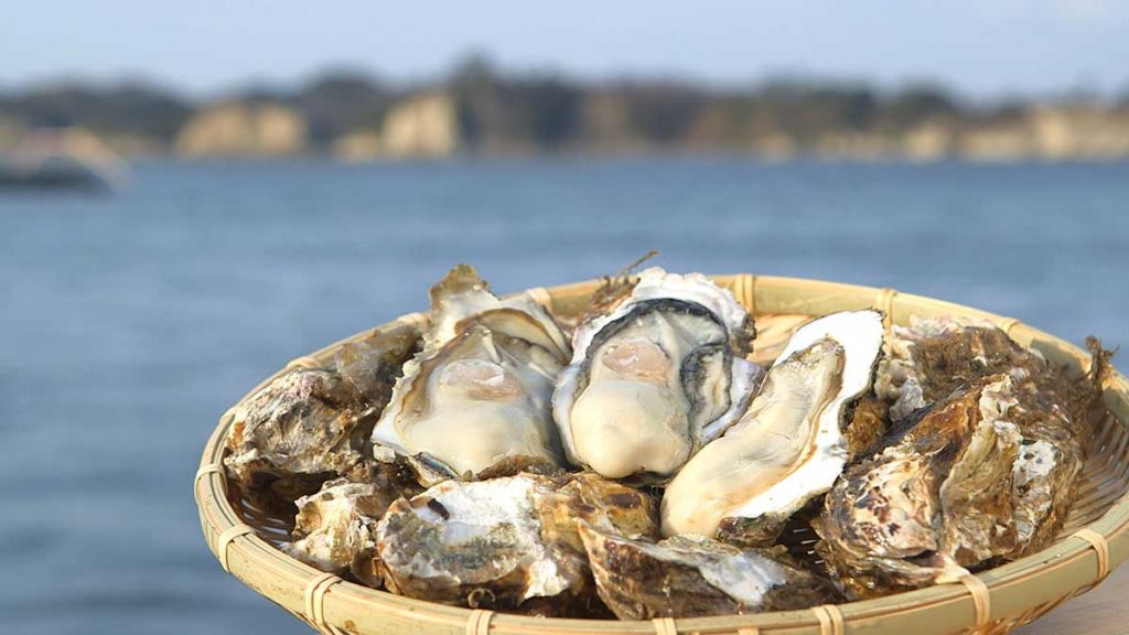 2つの一級河川から注ぐ、ミネラルやプランクトンなど栄養分が豊富な漁場で育てる牡蠣。サイズも大きく身も締まっていて、甘みのある深い味わいが自慢です。かき小屋の「焼きがき」をはじめ、各食事処の「鍋」や「フライ」など、さまざまな牡蠣料理が味わえますよ。