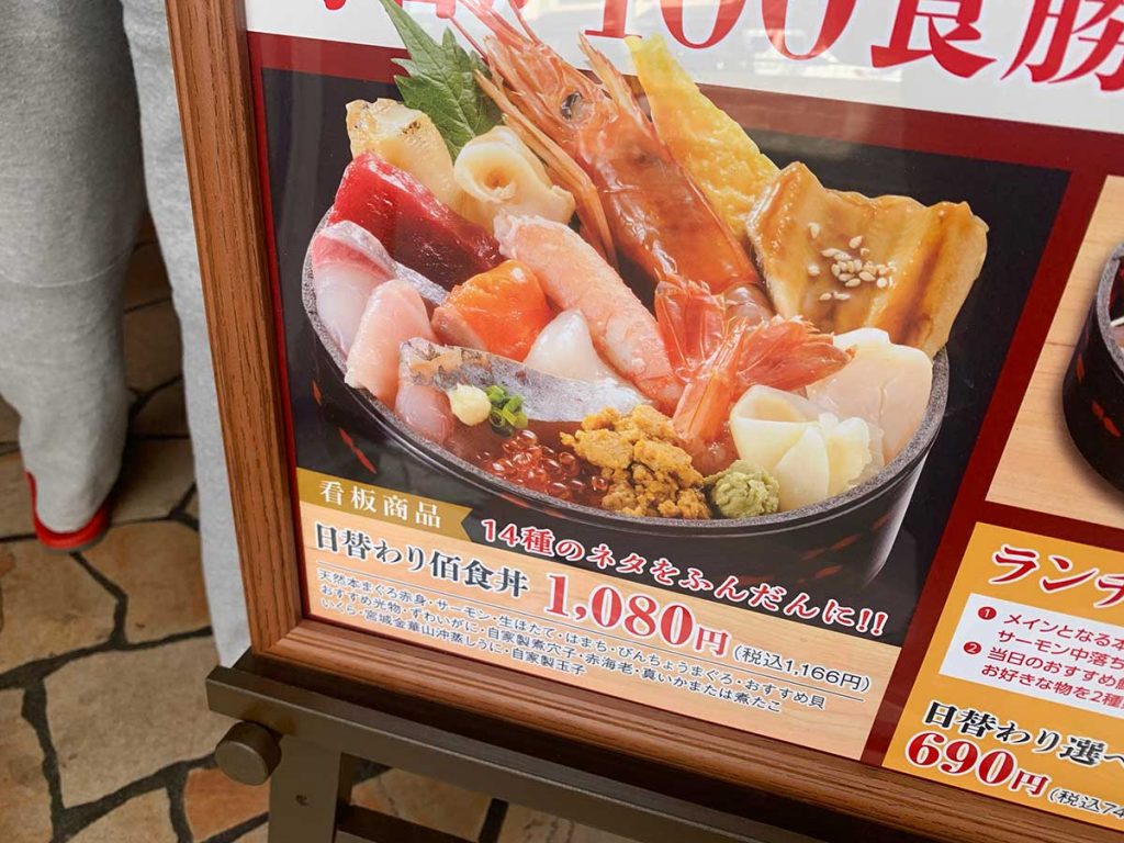 今日、仙台在住のみなさんに激推ししたいこちらの海鮮丼。なんと14種類ものネタがのって1,166円。