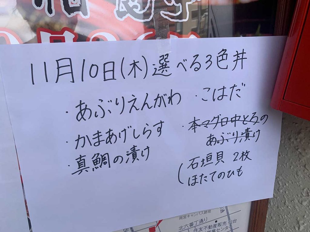 「日替わり佰食丼」はもちろん、その日のネタを使った選べる3色丼もコスパ抜群で魅力的…