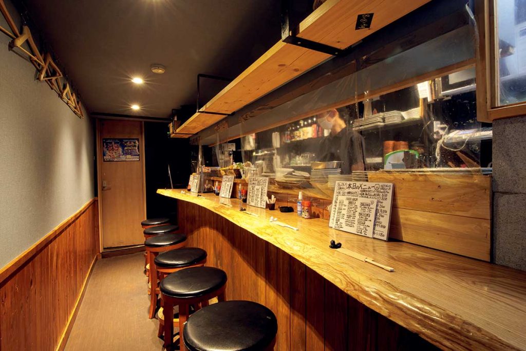 1階はカウンター8席。2階のボックス席は空きがあれば利用できるので、予約がおすすめですよ