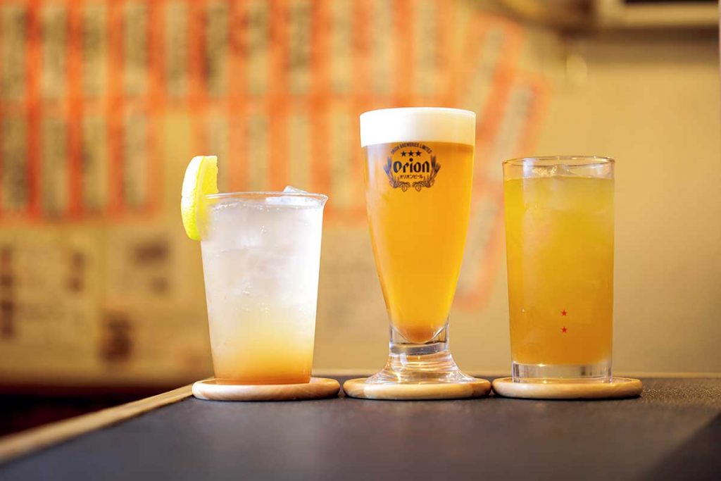 自家製きびシロップ入りの「沖縄レモンサワー」(680円)、喜界島で作られた「南の島のクラフトコーラ」(550円)など