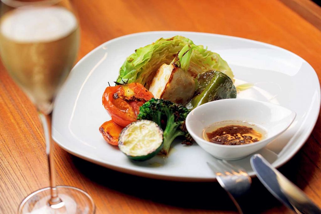 アンチョビ、ニンニク、オリーブオイルのシンプルなディップソースを添えた「本日の焼き野菜」(670円)