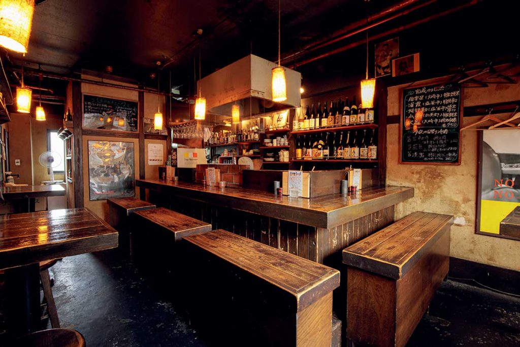 おでんから珍味、炭火焼き、カレーまで、バラエティ豊かなメニューが揃う居酒屋。店長の三浦さんは、懇意の八百屋や魚屋へ自ら足を運び、旬の食材を選んで買い付けを行っています。自家製がんもどきや厚揚げ、注文を受けてから成形して焼き上げるハンバーグなど、仕入れから仕込みまで手間暇を惜しみません。常時10種ほど揃う日本酒の中には全国で7軒しか扱いのない限定酒も。日本酒好きにはたまらない一軒です。