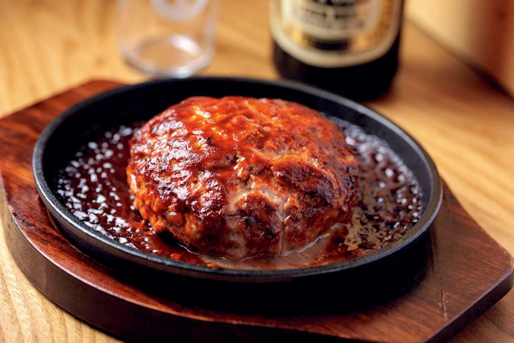 牛豚の合挽きで作る「自家製あらびきハンバーグ」(小・700円)。シェアできるほどのボリュームで食べ応え抜群です