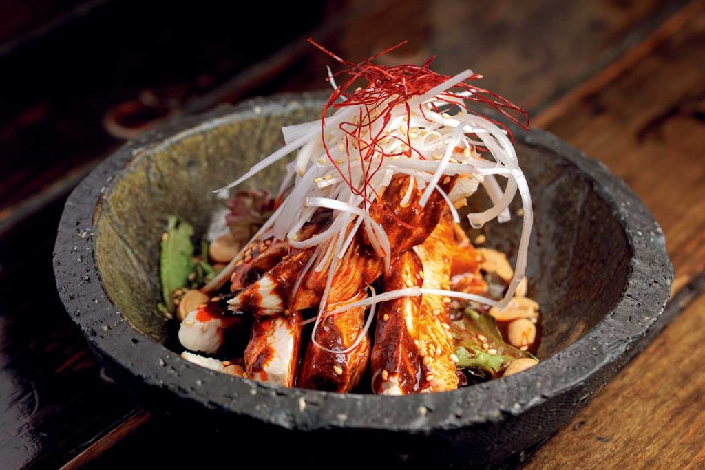 低温調理でしっとり仕上げた鶏肉を、豆板醤や山椒を効かせた自家製タレで味わう「鶏屋のよだれ鶏」(970円)