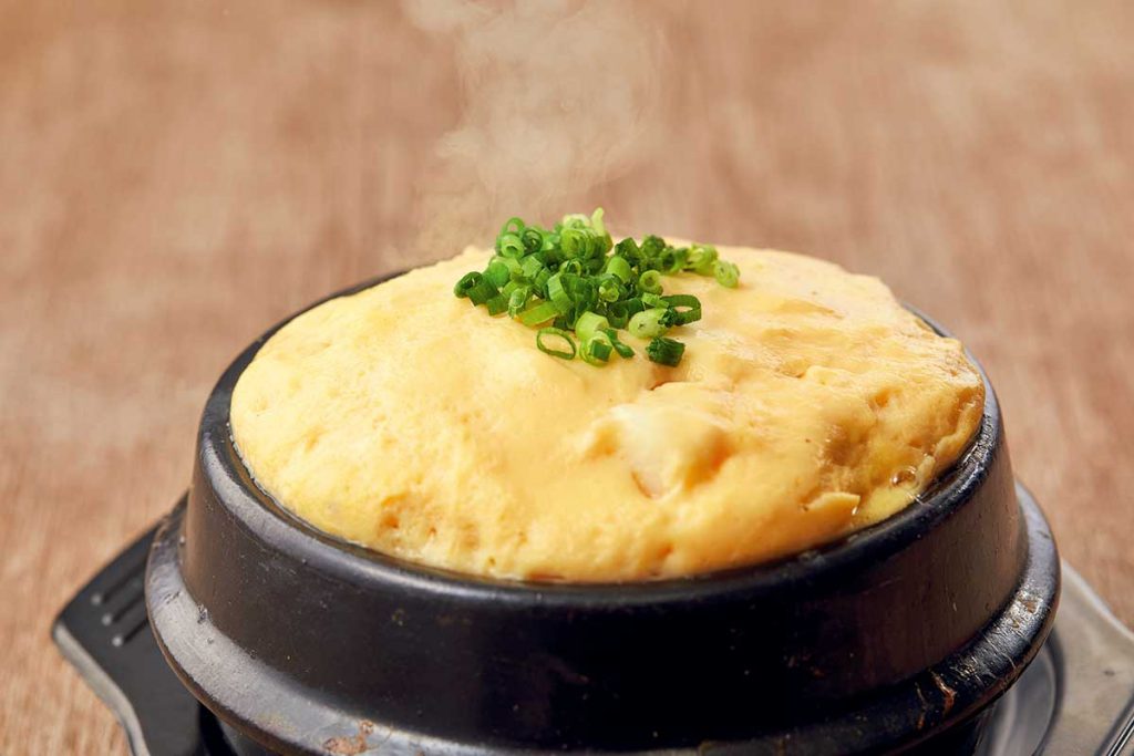 「ケランチム」とは、玉子と牛だしを合わせて蒸した料理。旨みのあるスープをたっぷりと含んだ、ふわっふわ食感が魅力です。「海鮮ケランチム」(539円)にはシーフードがごろごろ!