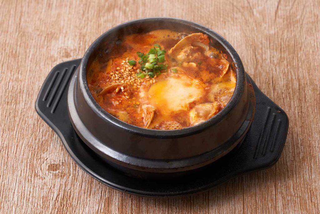 「あさりスンドゥブ」(462円)。あさりの出汁と辛味、玉子が最高の組み合わせですよ!