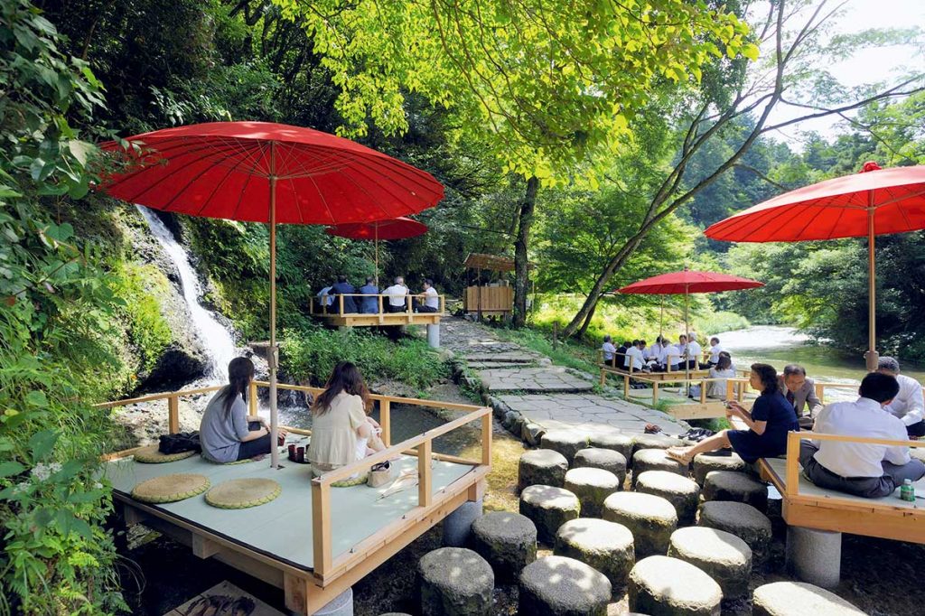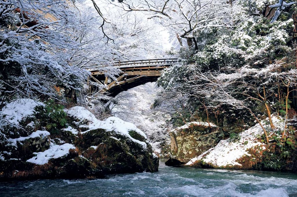 山中温泉街にある約1kmの渓谷。美しい橋から眺める四季の景色はもちろん、周辺にはおいしいグルメもたくさん!春からオープンする川床でゆったり過ごすのもおすすめですよ。