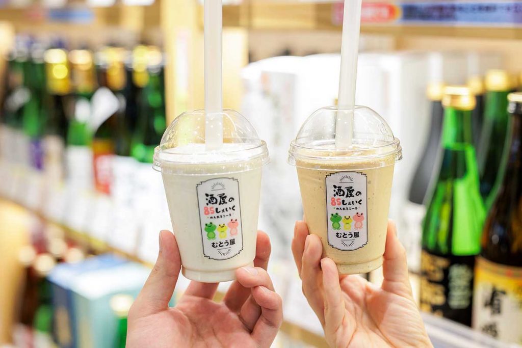 「85しぇいく」(各300円)。プレーンな甘酒シェイクのほか、季節フレーバーも人気。冬はきなこと黒蜜がたっぷり入った「85しぇいく4」(右)が登場