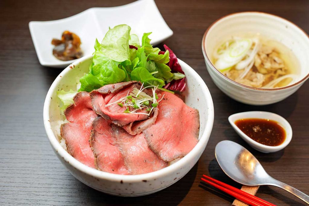 「仙台牛プレミアムローストビーフ丼」(1,980円)。ローストビーフが楽しめる一品。特製スープ付!