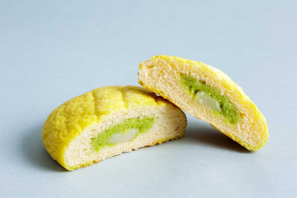 「ずんだメロンパン」(1個250円)。メロンパンの中に仙台名物・ずんだをたっぷりとイン。さらにもちもちの求肥を入れてまさに“ずんだもち”風に